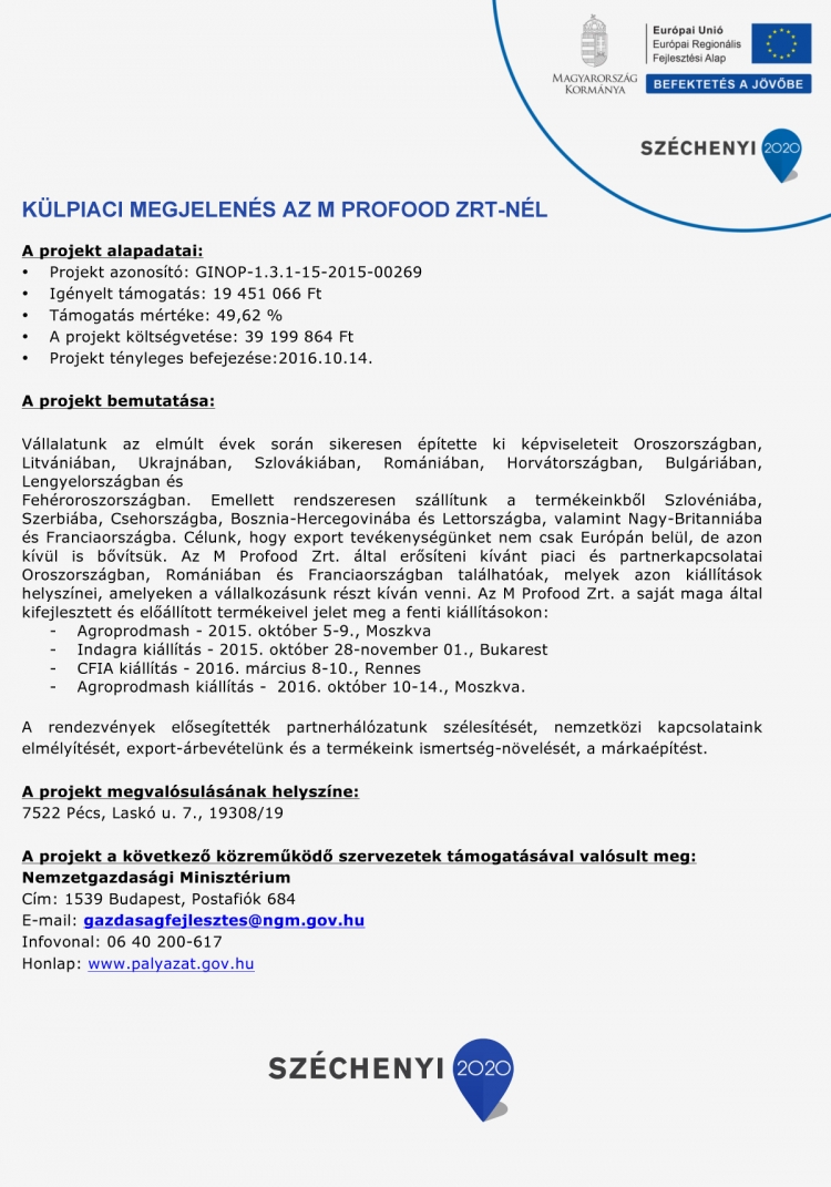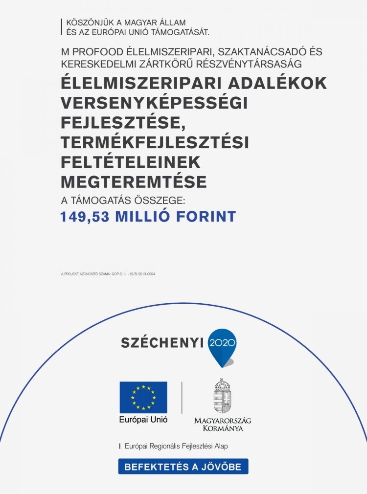 A „gyártáskapacitás bővítése az M Profood Zrt.-nél” valamint a „külpiaci megjelenés az M Profood Zrt.-nél” projektek keretében vállalatunk tovább tudta növelni a termelést, és ezáltal gazdasági versenyképességét.