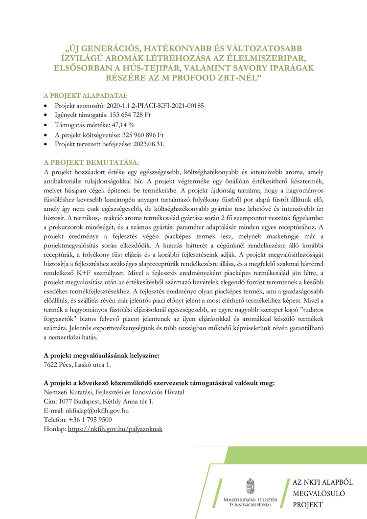 Új generációs, hatékonyabb és változatosabb ízvilágú aromák létrehozása az élelmiszeripar részére az M Profood Zrt-nél